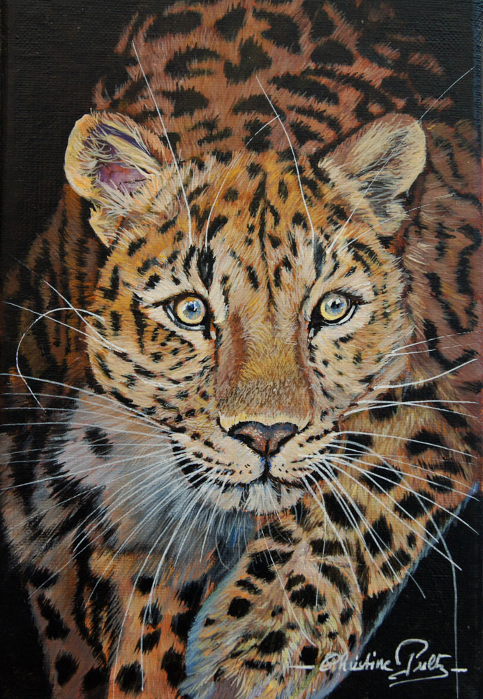 " L'instinct " (panthère) 16 x 24 cm - acrylique/toile - année 2025